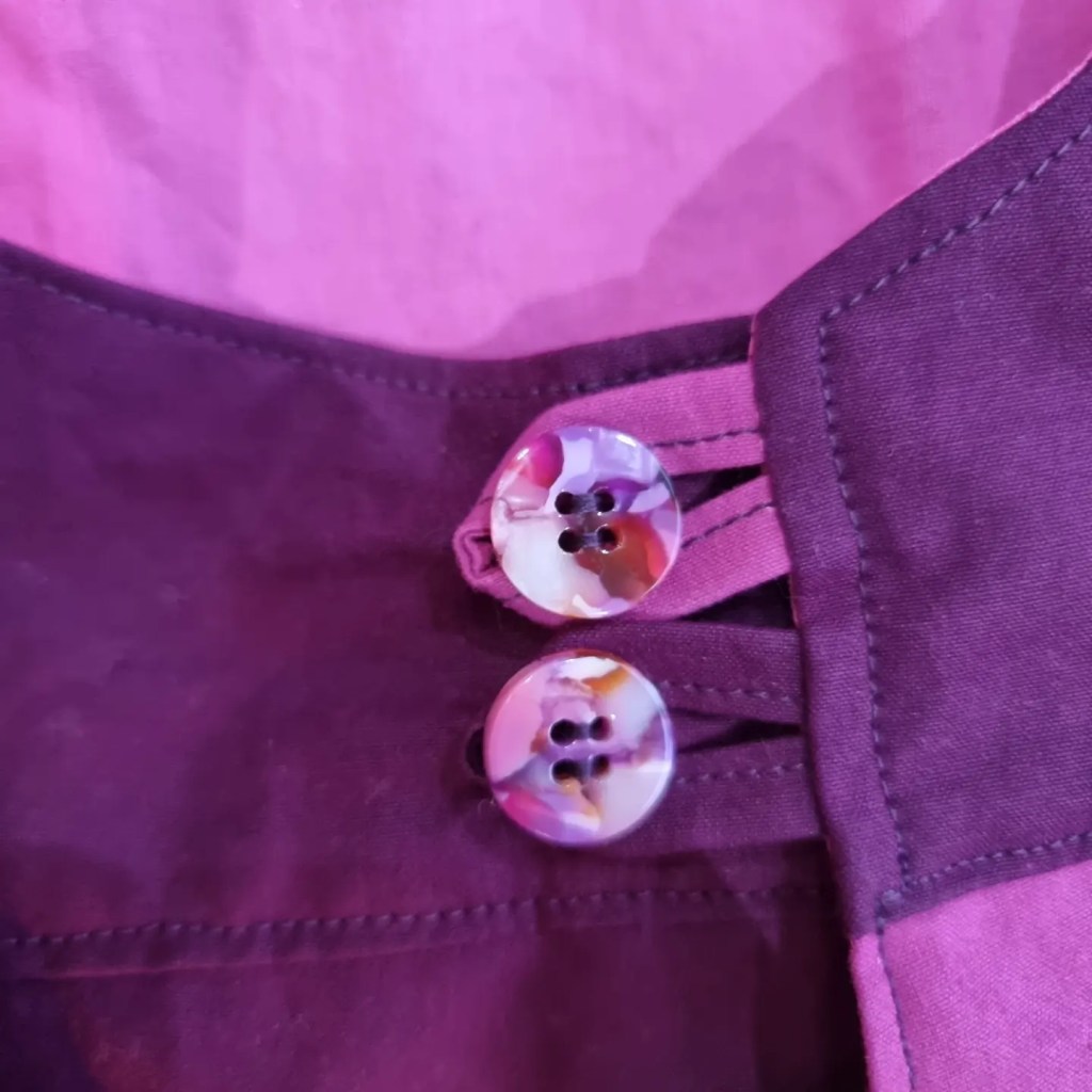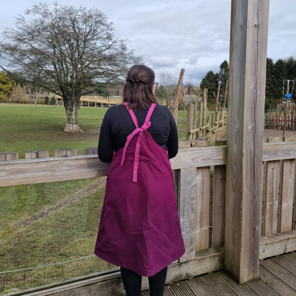 I’ve been wanting to make the Steele Pinafore for a while and I intially had hoped I had enough of the check Merchant and Mills fabric but ended up being a bit short. So I prewashed a cotton/viscose material ready for the SewConfident reatreat and thought I was good to go…. But then I visited Arkdefo in their new store in Glasgow and fell in love with their dry waxed fabric and all the beautiful colours! Came away with 3 dry waxed and a lining and decided I’d make the pinafore with these instead of the viscose. I loved the idea of a contrast pocket and straps and then realised some Pigeon Wishes buttons I had in my stash were a perfect match!